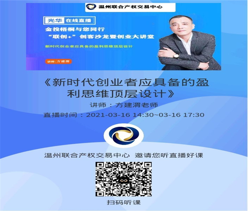 活動(dòng)采用線上直播的方式進(jìn)行,并邀請(qǐng)“慧商大學(xué)”創(chuàng)始人方建渭老師主講《新時(shí)代創(chuàng)業(yè)者應(yīng)具備的盈利思維頂層設(shè)計(jì)》。通過(guò)產(chǎn)品定位、品牌塑造、商業(yè)模式等內(nèi)容的分享,幫助創(chuàng)業(yè)者、企業(yè)家提高創(chuàng)新思維,開(kāi)拓產(chǎn)品定位設(shè)計(jì)新思路,了解企業(yè)營(yíng)銷(xiāo)新知識(shí)。直播結(jié)束后,線下還進(jìn)行了互動(dòng)交流,現(xiàn)場(chǎng)氣氛熱烈,各參與者發(fā)表對(duì)于創(chuàng)業(yè)的觀點(diǎn),交流了意見(jiàn),解除了疑惑,達(dá)到了活動(dòng)的目的。