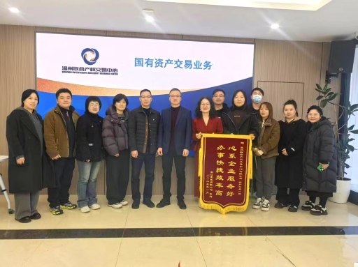 近日,溫州濱江置地有限公司(以下簡稱“濱江置地”)將一面印有“心系企業(yè)服務好、辦事快捷效率高”字樣的錦旗送至溫州聯(lián)合產權交易中心(以下簡稱“聯(lián)交中心”)資產交易一部,以表達對聯(lián)交中心在股權轉讓和資產轉讓業(yè)務中提供高效、專業(yè)服務的感謝。這不僅反映了聯(lián)交中心近年來不斷提升優(yōu)質服務的良好口碑,也展現了其在助力國企改革中的重要作用。
